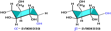 Циклические α- и β-формы глюкозы представляют собой пространственные изомеры, отличающиеся положением полуацетального гидроксила относительно плоскости кольца.