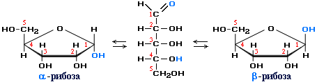 Аналогичные процессы происходят и в растворе рибозы: