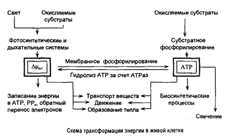 Важно отметить, что АТРазный комплекс может не только утилизировать ТЭП с образованием АТР, но и формировать его за счет гидролиза АТР, осуществляя таким образом взаимное превращение этих двух форм энергии.