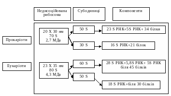 Рис. 2. Будова рибосом прокаріотів та еукаріотів
