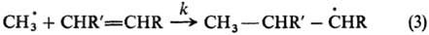 Реакционная способность характеризуется отношением константы скорости k к константе скорости k0 реакции с этиленом (R, R' = Н) (см. табл.). Аналогичные кинетические измерения сделаны для реакций присоединения метильного радикала к ароматическим молекулам и для реакций присоединения др. радикалов.