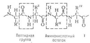 Белковая молекула может состоять из одной или нескольких цепей, содержащих от 50 до нескольких сотен (иногда – более тысячи) аминокислотных остатков. Молекулы, содержащие менее 50 остатков, часто относят к пептидам.