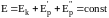 Если система замкнута и силы взаимодействия между частицами консервативны, то полная энергия содержит только два слагаемых: