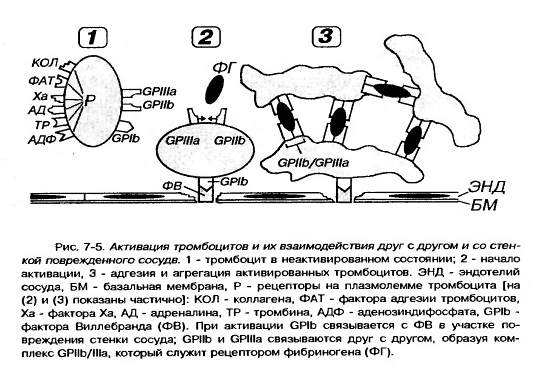 Наиболее важными из них в функциональном отношении являются рецепторные гликопротеины Ib (GP Ib), IIb (GP IIb), IIIa (GP IIIa), рецепторы к АДФ, адреналину, тромбину, фактору Ха, фактору агрегации тромбоцитов (ФАТ), коллагену.