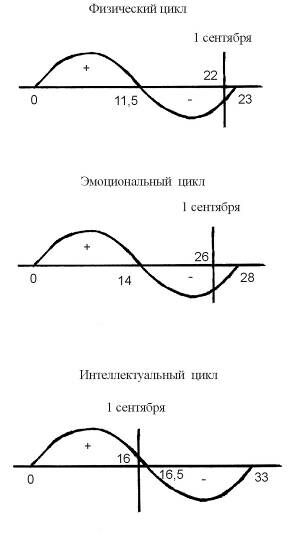 Человек со дня рождения находится в трёх биологических ритмах: физическом, эмоциональном и интеллектуальном.