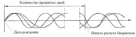 Для расчета собственных биоритмов следует определить количество прожитых дней на определенную дату, начиная со дня рождения. Потом общую численность прожитых дней надо поделить на продолжительность периодов физического, эмоционального и интеллектуального циклов (23, 28, 33). Этим самым мы "ловим" конец синусоиды и определяем, какой день каждого цикла отвечает нужной дате [7].