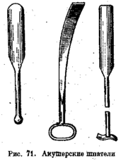 Акушерские шпатели (рис. 71) применяют для отделения кожи от подлежащих тканей при закрытых методах фетотомии.