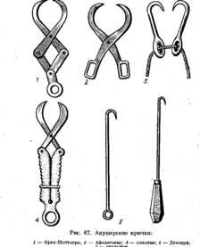 Передние концы их имеют заходящие друг за друга зубцы, а задние — кольца. Щипцы применяют в тех случаях, когда с помощью петель и крючков извлечь плод не удается.