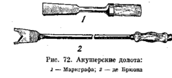 Акушерские долота (рис. 72) применяют дли раздробления костей при отделении позвоночника или головы плода.