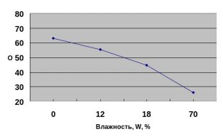 Ударная вязкость древесины с низкой влажностью уменьшается с повышением температуры, а при высокой влажности, наоборот, увеличивается (испытывалась древесина в нагретом состоянии).