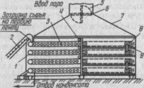 Сушка в паровых ленточных сушилках. В России выпускают ленточные сушилки с поверхностью лент от 10 до 90 м2.