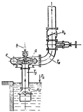 Для выяснения влияния высоты всасывания на работу насоса производят испытания их на кавитационных стендах. Здесь насос испытывают при увеличивающейся высоте всасывания, наблюдая начало кавитации по падению рабочих параметров насоса.