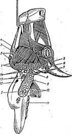 Рис. 2. Голова крупного рогатого скота, подвешенная за угол сращения ветвей нижней челюсти (вид сбоку).