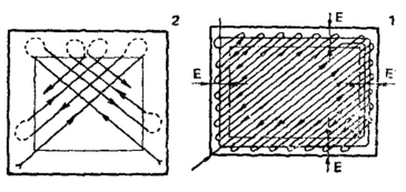 Рис.1. Схема подготовки участка Рис.2. Способы движения: к челночному способу движения: 1 – челночный; 2 – челночный С – ширина участка; Е – поворотная односторонний полоса; К-К – контрольная линия; А-А – линия первого прохода агрегата