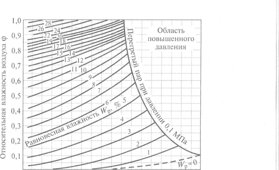 Рис. 2.1. Диаграмма равновесной влажности (по П.С.Серговскому)