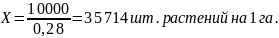 Зная площадь питания одного растения, находим густоту стояния растений на 1га: