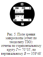 Поле зрения микроскопа и отсчеты по горизонтальному Г и вертикальному В кругам теодолита ТЗО показаны на рисунке 5.