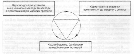 Роль науково-дослідних установ, вищих навчальних закладів, а також закладів з підготовки масових кадрів (коледжів, технікумів, професійних училищ тощо) полягає в безпосередній розробці наукових ідей, винаходів, новітніх технологій, прямо пов'язаних з генезисом, апробацією та дифузією інноваційних продуктів. Зрозуміло, що для цього їм потрібні фінансові ресурси, обсяг яких покривав би не лише потребу в заробітній платі, а й затрати на ту частину інноваційної діяльності, яка припадає, власне, на дану ланку. При цьому, на нашу думку, важливим є регулювання інноваційних розробок, які б наукові інституції та їх складові направляли безпосередньо на потреби відтворення земельних ресурсів аграрного сектору. Насамперед ідеться про адресність, комплексність та цільове спрямування наукових досліджень, які прямо стосуються землі. Земельні ресурси нині вимагають найпильнішої уваги не лише із суто споживацьких матеріальних потреб, а й з огляду на пристосованість інноваційних продуктів до розв'язання проблем збереження, поліпшення й охорони земельних ресурсів тощо. При цьому одночасно необхідно налагодити оптимальне розв'язання екологічних і соціальних складових відтворювального процесу.