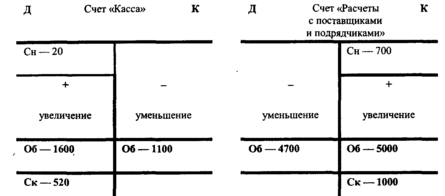 Счета представляют собой таблицу т-образной формы, левая сторона которой называется дебет и обозначается буквой «Д», а правая — кредит и обозначается буквой «К». Счет ведут в особых таблицах (на карточках или в книгах). Записываемые на счете хозяйственные операции вызывают увеличение или уменьшение данной группы средств, для которой открыт счет. Поэтому для удобства записей и подсчетов счет имеет две части или стороны. На одну сторону записывается увеличение, а на другую — уменьшение. Являясь способом непрерывного текущего учета хозяйственных операций, счета накапливают и подготавливают учетные данные для периодического обобщения их в балансе.