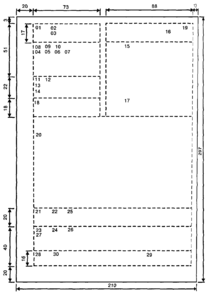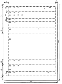 На рисунках цифрами от 01 до 30 обозначены реквизиты в границах зон, очерченных штриховыми линиями2. Использование штриховых линий символизирует возможность некоторого перемещения реквизитов в площади формата. Такие перемещения в основном связаны с колебаниями числа строк текста документа (реквизит 20), что влечет за собой перемещение границ реквизитов 21, 22, 25, а также реквизитов 23, 24, 26, 27.