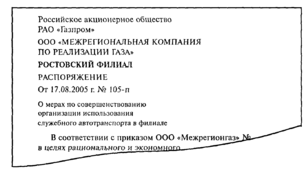 При этом воспроизведение постоянных реквизитов, предусмотренных ГОСТ Р 6.30-2003, для исходящих документов является обязательным. Для документов внутреннего хождения, например, таких как распоряжение, акт, протокол, положение, часть реквизитов (01-07, 09, 14), как правило, может не воспроизводиться, а реквизит 13 «Ссылка на регистрационный номер и дата документа» опускается вовсе. Такой подход весьма распространен в практике документирования. Пример такого оформления приведен слева.