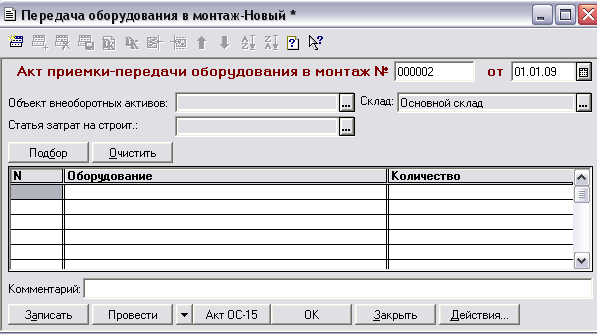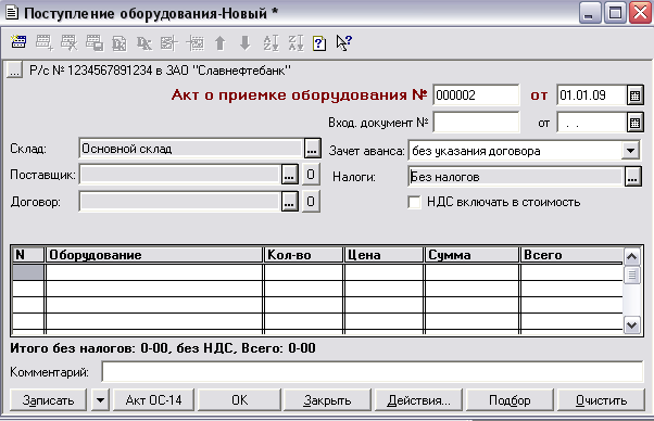 Рисунок 1 – Документ «Поступление оборудования, требующего монтажа»