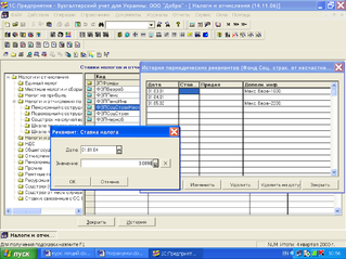 При розрахунку утримань із заробітної плати, «1C: Бухгалтерія» користується значеннями ставок податків і зборів, які зберігаються в реквізитах довідника «Податки і відрахування». Історія в цьому довіднику ведеться для реквізитів: