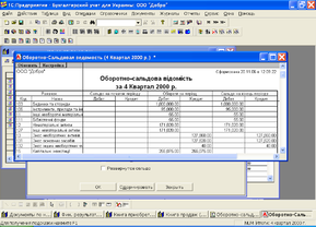 Перед виведенням на екран оборотно-сальдової відомості програма запропонує форму діалогу, в якій можна встановити параметри формування відомості.