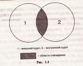 Объем работы по внутреннему аудиту должен определяться руководством и программироваться независимо от работы внешних аудиторов. Между двумя видами аудита существуют области частичного совпадения (рис. 1.1).