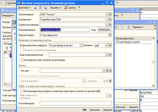 открываем справочник «Договоры контрагентов» и заносим в него информацию об основании расчетов.Рис.14