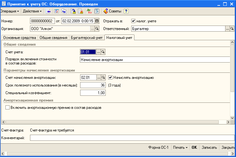 На закладке “бухгалтерский учет” указывается счет бухгалтерского учета и счет налогового учета (при установленном флажке “Отражать в налоговом учете”), на который необходимо списать сумму понесенных расходов.