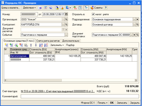 Документ «Передача ОС» Рис.32 предназначен для отражения в учет снятия баланса (налогового учета) объектов основных средств, подготовленных к выбытию, а также объектов, по которым подготовка к передаче и выбытие происходит одновременно (в одном отчетном месяце).