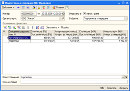 В программе выбытие объектов основных средств отражается документами: «Подготовка к передаче ОС», «Передача ОС», «Списание ОС».19