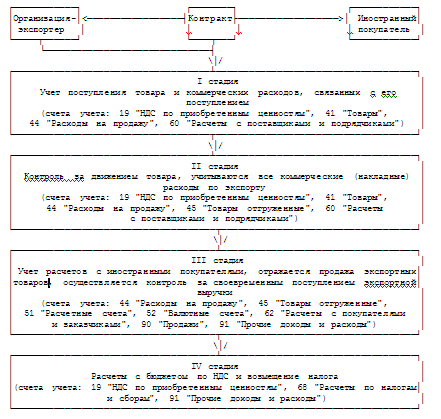 Условно деятельность по учету экспортной операции можно разделить на четыре этапа (рис. 2):