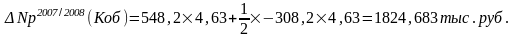 Общее влияние за 2007/2008 год: +1824,999 + 0 =1824,999 тыс. руб.