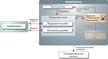 Предметная область, автоматизируемая конфигурацией «Зарплата и Управление Персоналом», поясняется следующей схемой (Рис. 1).