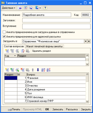В информационной базе можно создавать и хранить типовые наборы вопросов, используемых при анкетировании/опросах работников или кандидатов на работу (Рис. 18).