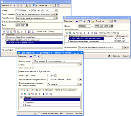 Обучение работников – это составная часть задачи по обеспечению необходимой квалификации персонала. Конфигурация помогает организовать работу по обучению персонала, разделяя ее на следующие элементы: