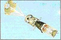 Для падения в положении вертикально вниз бомба снабжена парашютом.