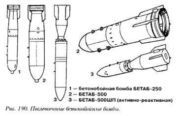 Бетонобойная бомба БетАБ-500 разработана в ГНПП "Базальт". Предназначена для разрушения бетонированных сооружений, мостов, военно-морских баз.