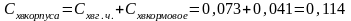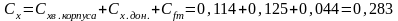 После введения исходных данных получили значение характеристик корпуса и внутренней части и общее значение.