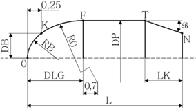 RB=1,18 мм.; DB=1,2мм.; DP= 5,55 мм.;