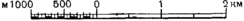 Линейный масштаб. Более просто измерять расстояния по карте с помощью линейного масштаба. Оформление линейных и численных масштабов на топографических картах показано на рис. 1.