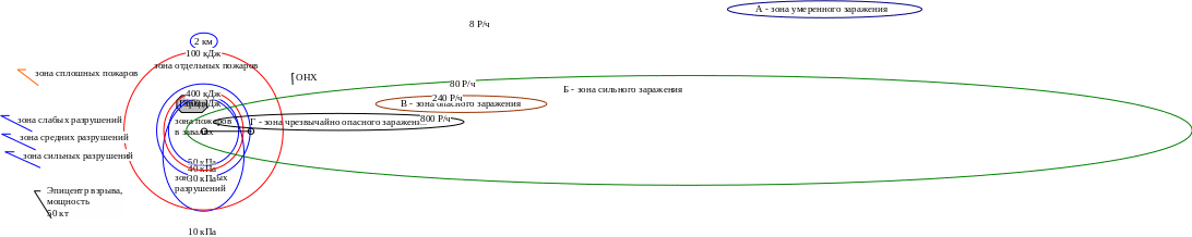 РИЛОЖЕНИЕ 1 - ЗОНЫ РАЗРУШЕНИЙ, ПОЖАРОВ И РАДИАЦИОННОГО ЗАРАЖЕНИЯ 1 Защита объектов народного хозяйства от оружия массового поражения: справочник, под ред. Г. П. Демиденко, 1989 г. - 287 с. (Далее в работе также используются справочная информация этого источника).