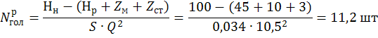Число рукавов округляем до целого числа в меньшую сторону и принимаем 11 рукавов.