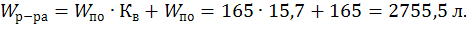 Т.к. Кф = 14,2 < Кв = 15,7 (количество воды на 1 л пенообразователя, требуемое для приготовления 6 % раствора пены), вода в емкости автомобиля расходуется полностью, а часть пенообразователя остается. В этом случае объем раствора определим по формуле: