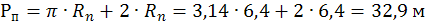 Рассчитаем периметр пожара, учитывая что фронт распространения пламени имеет форму полукруга: