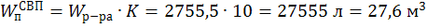 Определим возможный объем тушения ВМП средней кратности: