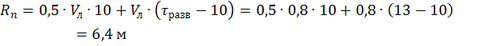 Определим путь пройденный пламенем, учитывая, что в течение первых 10 минут развития пожара огонь распространяется со скоростью вдвое меньше табличного значения: