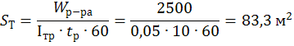 Определим возможную площадь тушения ГЖ ВМП стволами ГПС:
